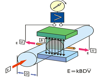 與此相仿.在磁感應強度為B的均勻磁場中,垂直于磁場方向放一個內徑為D的不導磁管道,由上式可見,體積流量qv與感應電動勢e和測量管內徑D成線性關系,與磁場的磁感應強度B成反比,與其它物理參數無關.這就是電磁流量計的測量原理.